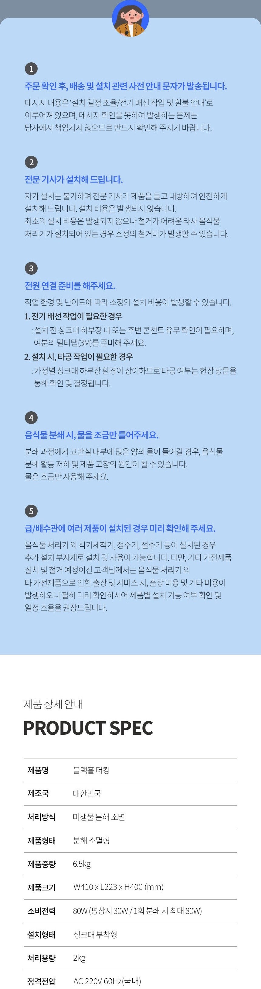 [블랙홀더킹] 2025 업그레이드 분쇄 미생물 싱크대일체형 음식물처리기